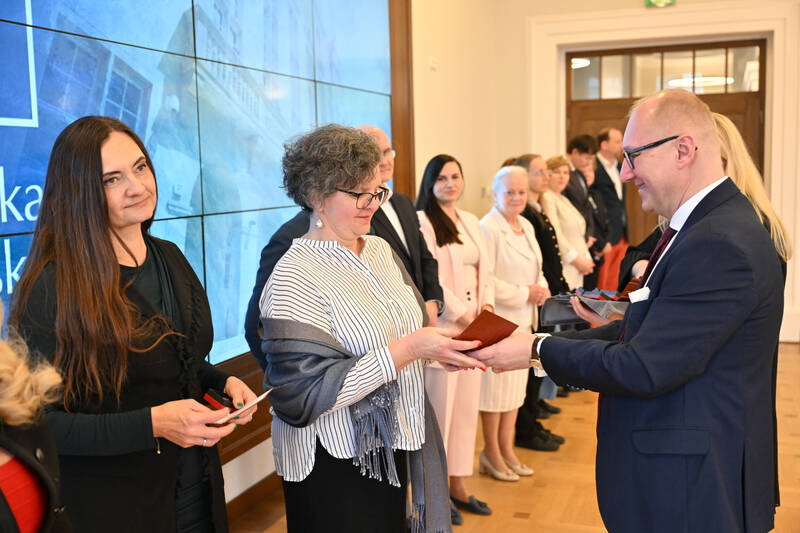 Złote Odznaki Politechniki Wrocławskiej, nadawane szczególnie zasłużonym pracownikom i pracowniczkom, wręczył prof. Arkadiusz Wójs, rektor PWr. Otrzymali je: