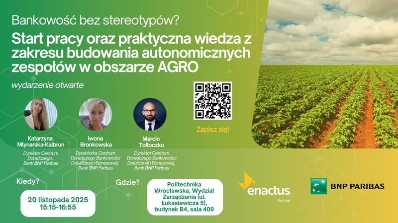 Dołącz na 10. spotkanie w ramach współpracy Enactus Poland z BNP Paribas Bank Polska pt. „Bankowość bez stereotypów? Start pracy oraz praktyczna wiedza z zakresu budowania autonomicznych zespołów w obszarze AGRO" 🌾💼