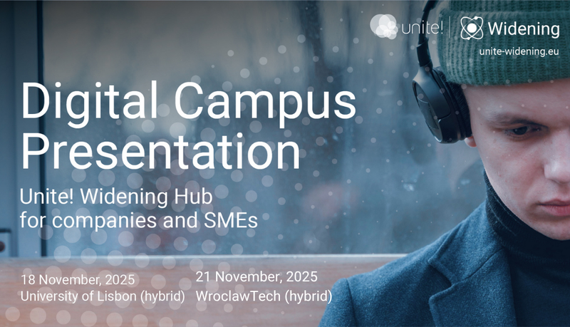 Zapraszamy na wydarzenie Unite!Widening Digital Campus organizowane przez Uniwersytet w Lizbonie i Politechnikę Wrocławską. Wydarzenie będzie odbywać się w języku angielskim.